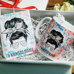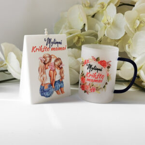 Rinkinukas žvakė ir matinis stiklinis puodelis Mylimai krikšto mamai