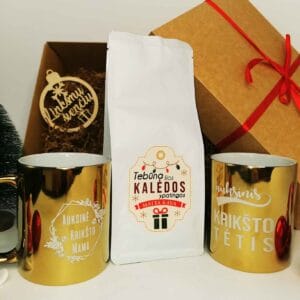 Rinkinukas su kava pakelyje krikšto tėveliams raudona gold