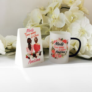 Rinkinukas žvakė ir matinis stiklinis puodelis Meilė tarp mamos ir dukros amžina (tamsiaplaukė)