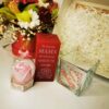 Dovanų rinkinukas mamos dienos proga. Rankų darbo žvakė, muilo rožė, vazelė
