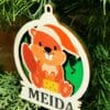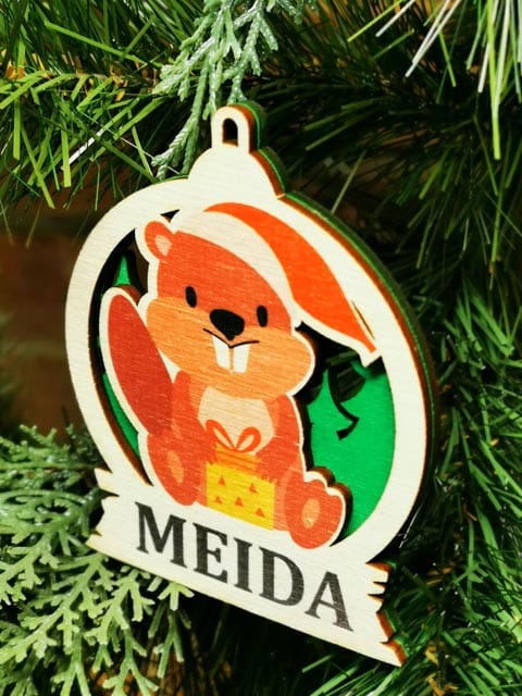 Lazeriu pjautas iš dviejų sluoksnių 3mm faneros kalėdinis žaisliukas su norimu vardu.