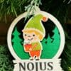 Lazeriu pjautas iš dviejų sluoksnių 3mm faneros kalėdinis žaisliukas su norimu vardu.