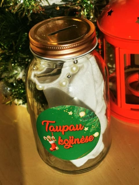 Stiklainis – taupyklė ir pora kalėdinių kojinių (kojinės vieno dydžio)
