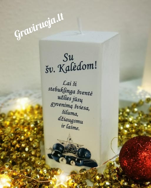 Kvepianti natūralaus rapsų vaško žvakė ” Lai ši stebuklinga šventė užlies Jūsų gyvenimą šviesa” stačiakampė