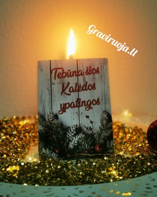 Rankų darbo žvakė ” Tebūna šios Kalėdos ypatingos” trikampė