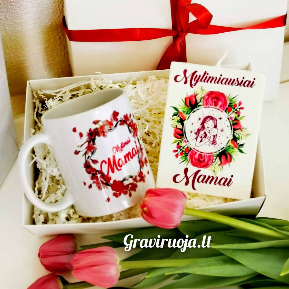 Rinkinukas mylimiausiai mamai. Puodelis ir žvakė.