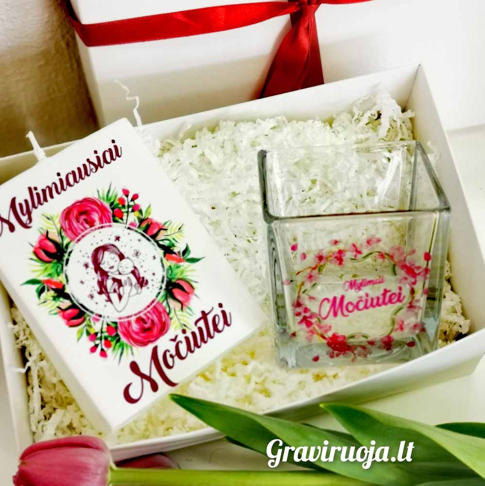 Rinkinį sudaro vazelė bei rankų darbo žvakė