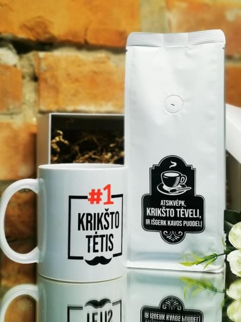 Rinkinukas puodelis ir kava krikšto tėtis 1