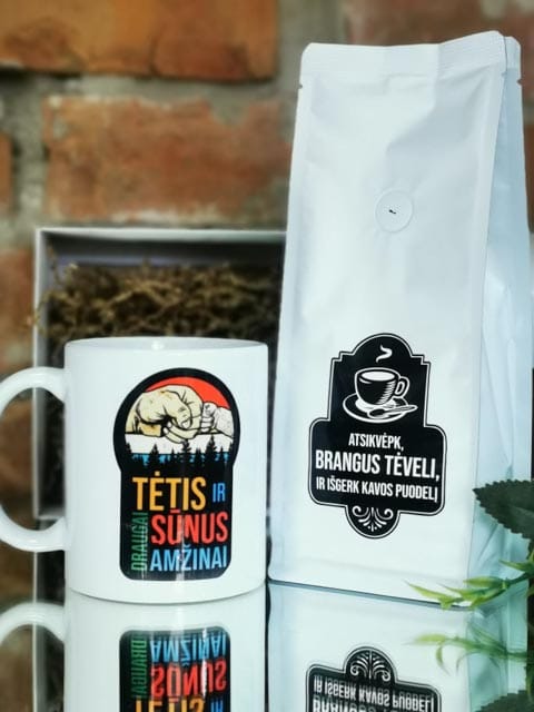 Rinkinukas puodelis ir kava tėtis ir sūnus