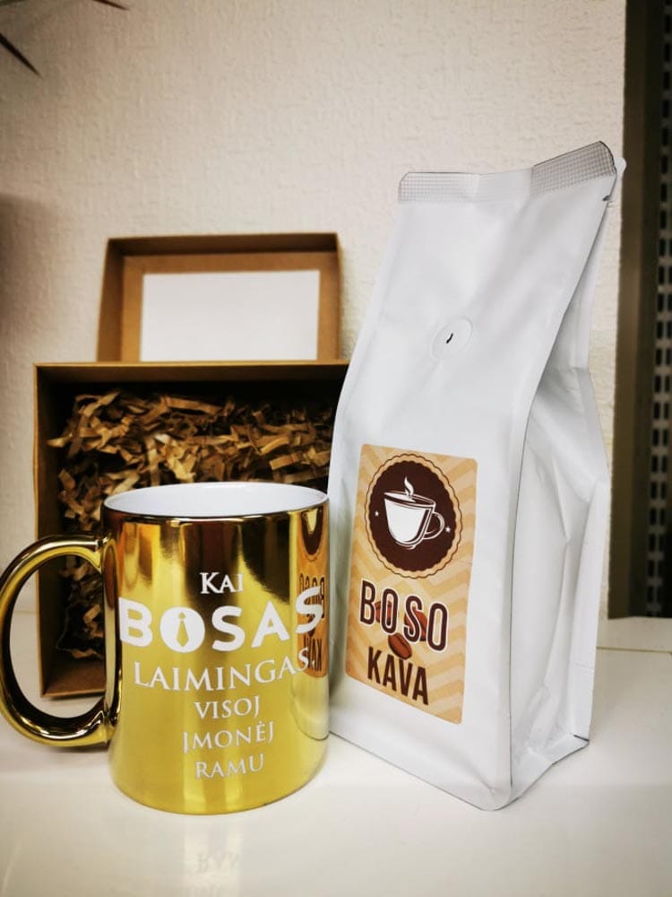 Rinkinį sudaro 250 gr. kavos bei auskinis puodelis.