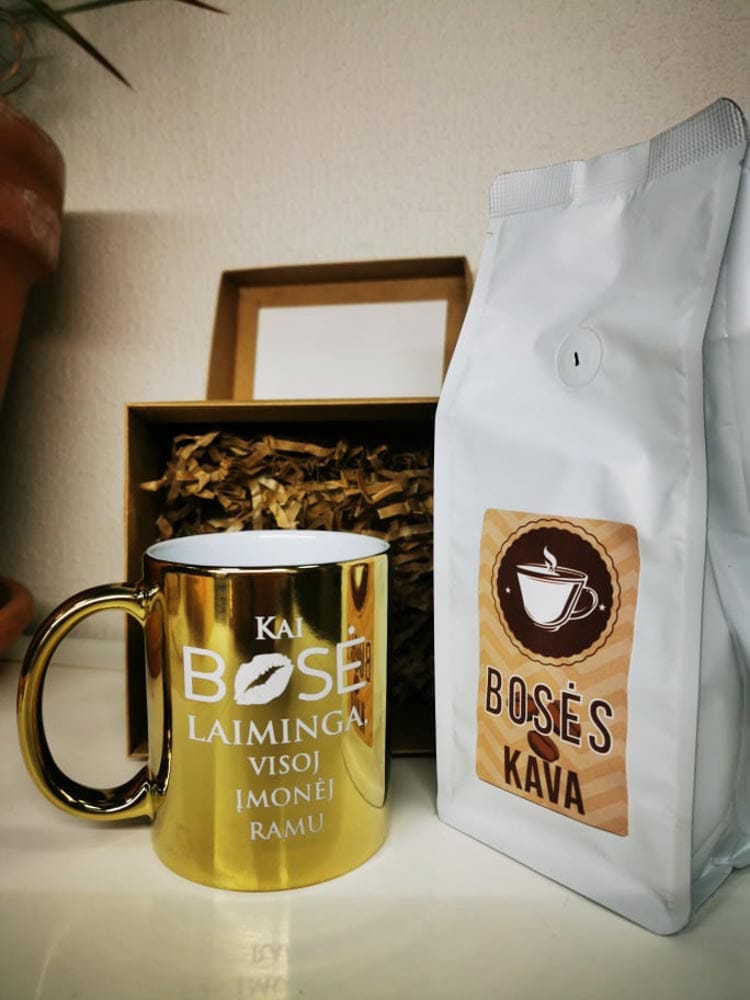 Rinkinį sudaro 250 gr. kavos bei auskinis puodelis.