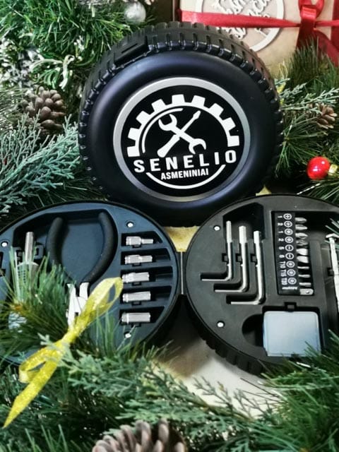 Įrankių rinkinys 25 vnt., supakuotas į padangos formos kasetę