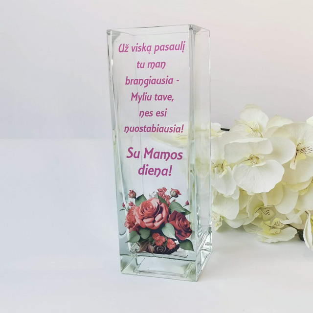 Stiklinė spalvota vaza su rožėmis Už viską pasaulyje tu man brangiausia
