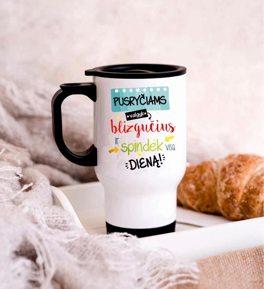 Puikus pasiūlymas visiems kavos, arbatos mėgėjams – termo puodelis su išskirtiniu, originaliu užrašu.