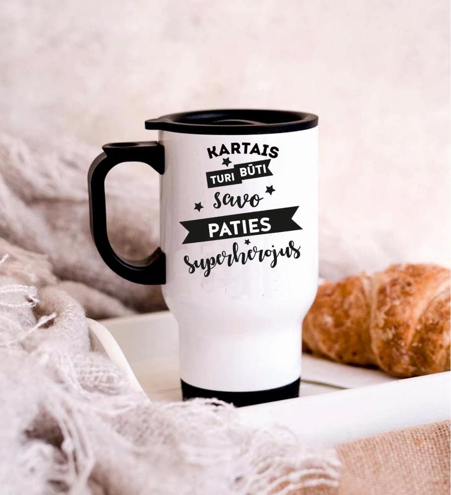 Puikus pasiūlymas visiems kavos, arbatos mėgėjams – termo puodelis su išskirtiniu, originaliu užrašu.