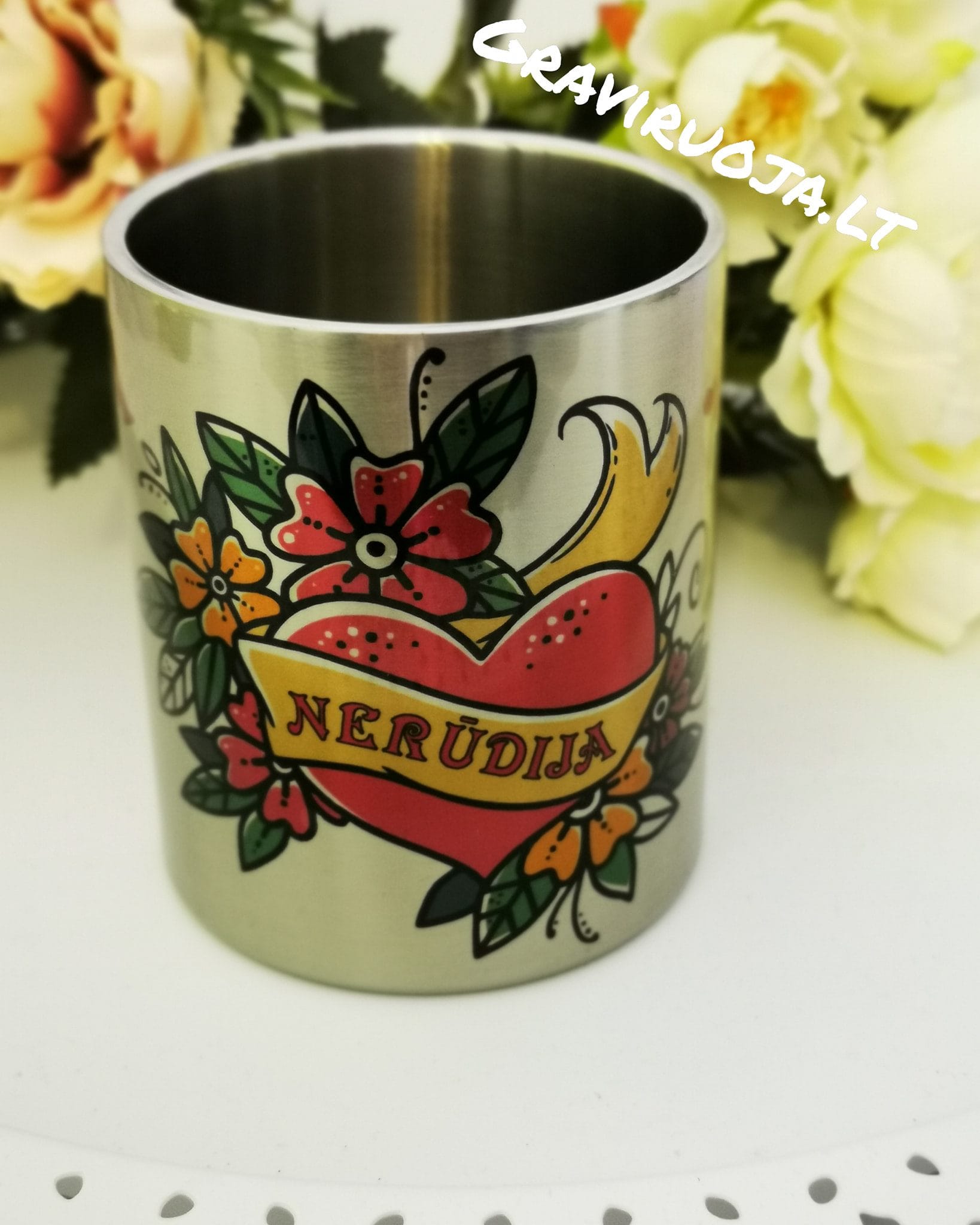 Nerūdijančio plieno puodelis su dviguba sienele, todėl jame įpiltas gėrimas ilgiau išlaikys temperatūrą.