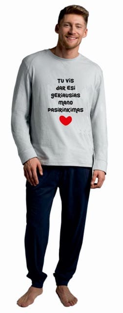 Vyriška pižama su linksmu užrašu – puiki dovana Valentino dienos proga ir ne tik.