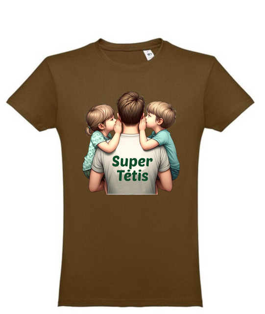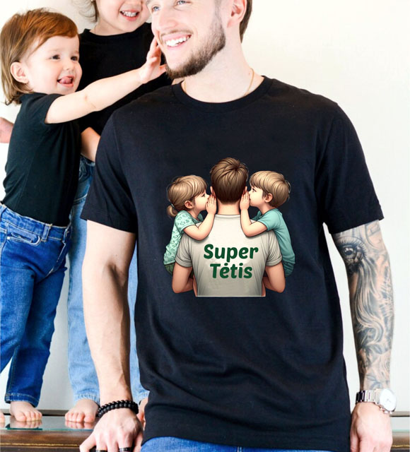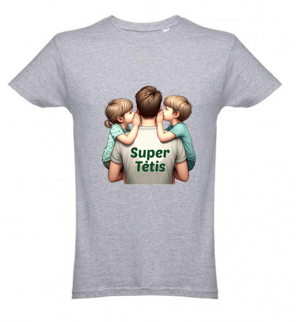 Vyriški Marškinėliai su spalvota spauda ” Super tėtis su dviem vaikučiais”