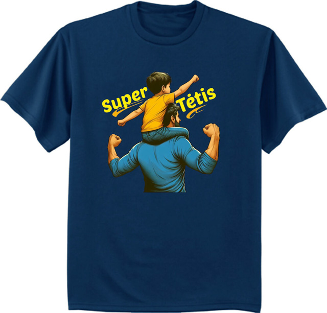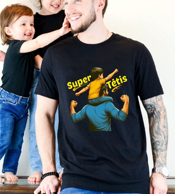 Vyriški Marškinėliai su spalvota spauda „Super tėtis su sūnum”