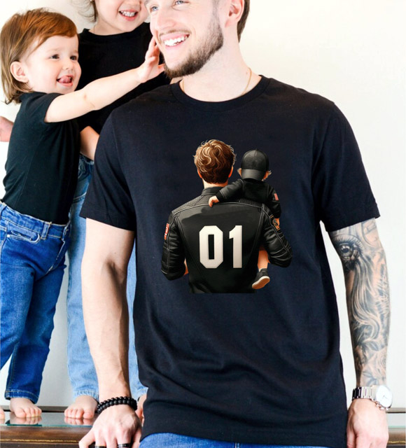 Vyriški Marškinėliai su spalvota spauda „Tėtis Nr 1 su vaikučiu”