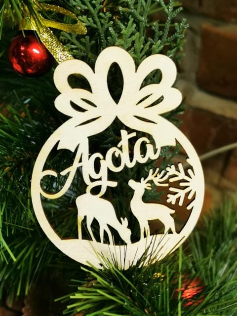 Lazeriu pjautas iš  3mm faneros kalėdinis žaisliukas su norimu vardu.