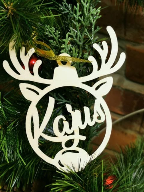 Lazeriu pjautas iš  3mm faneros kalėdinis žaisliukas su norimu vardu.