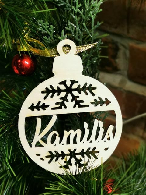 Lazeriu pjautas iš  3mm faneros kalėdinis žaisliukas su norimu vardu.