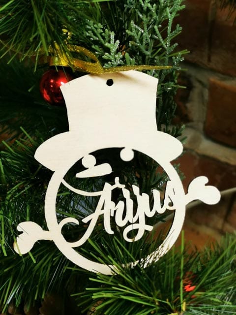 Lazeriu pjautas iš  3mm faneros kalėdinis žaisliukas su norimu vardu.