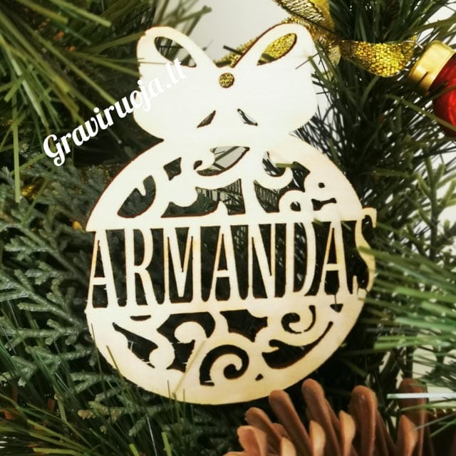 Lazeriu pjautas iš  3mm faneros kalėdinis žaisliukas su norimu vardu.