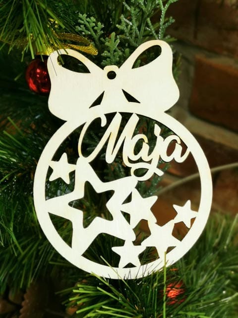 Lazeriu pjautas iš 3mm faneros kalėdinis žaisliukas su norimu vardu.